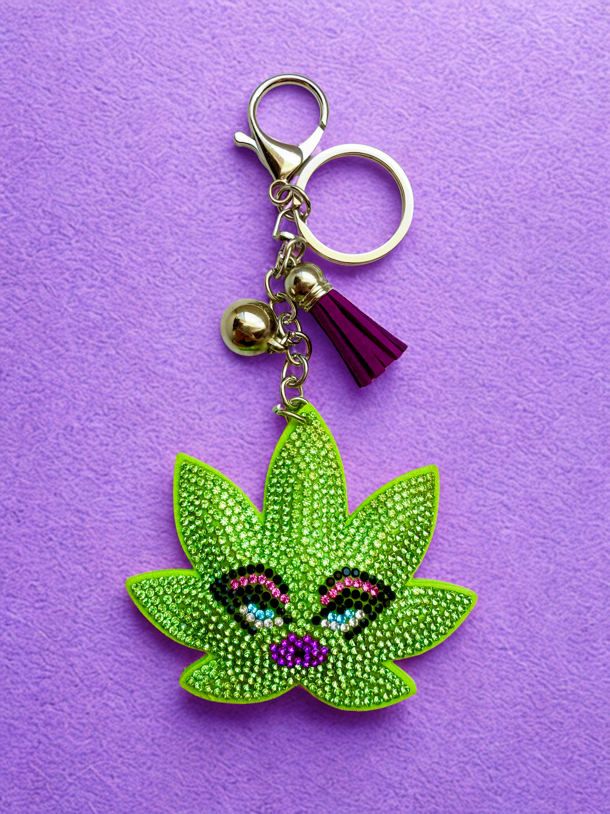 Aren't you obsessed?! Our rhinestone Diva Kush bedazzled puffy keychain is the sassiest addition to any bag, keyring, or belt loop.